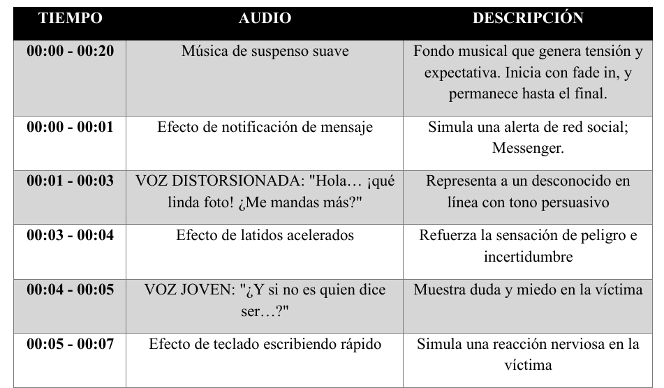 Es importante agradecerle a mi amiga y compañera Daniela que me ayudo con la voz principal de la actuación. Así mismo, también otorgarle el crédito a las siguientes paginas y aplicaciones que hicieron posible la producción del audio: